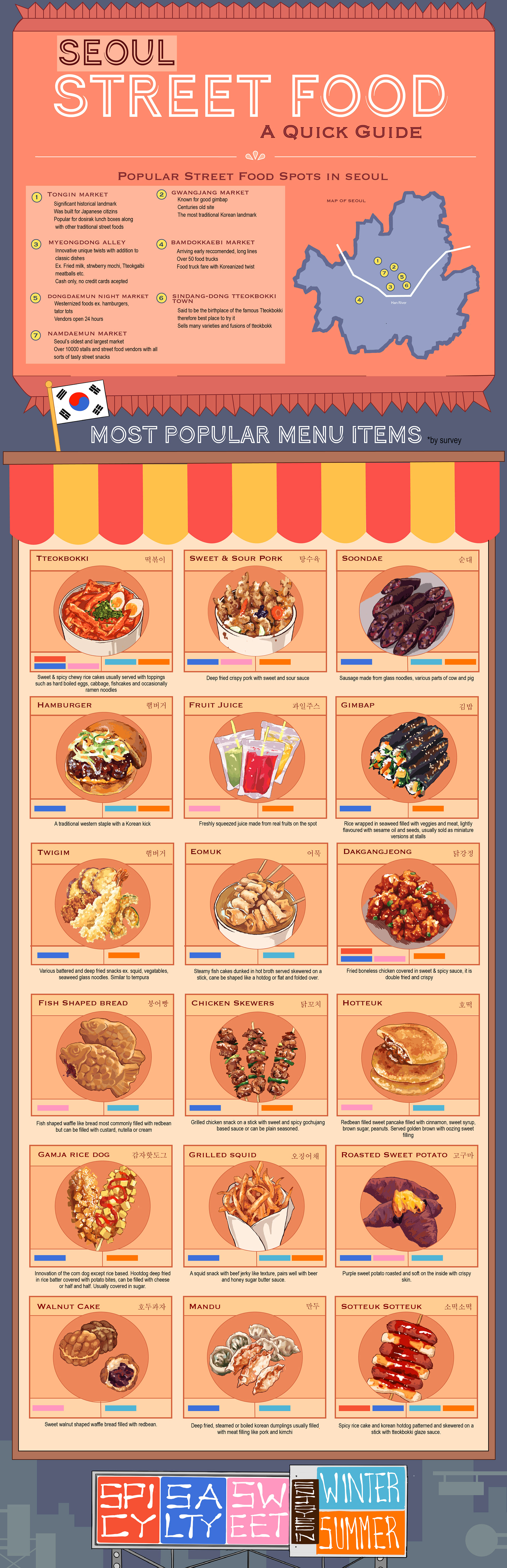 An infographic guide to Seoul Street Food in Korea. For school project.